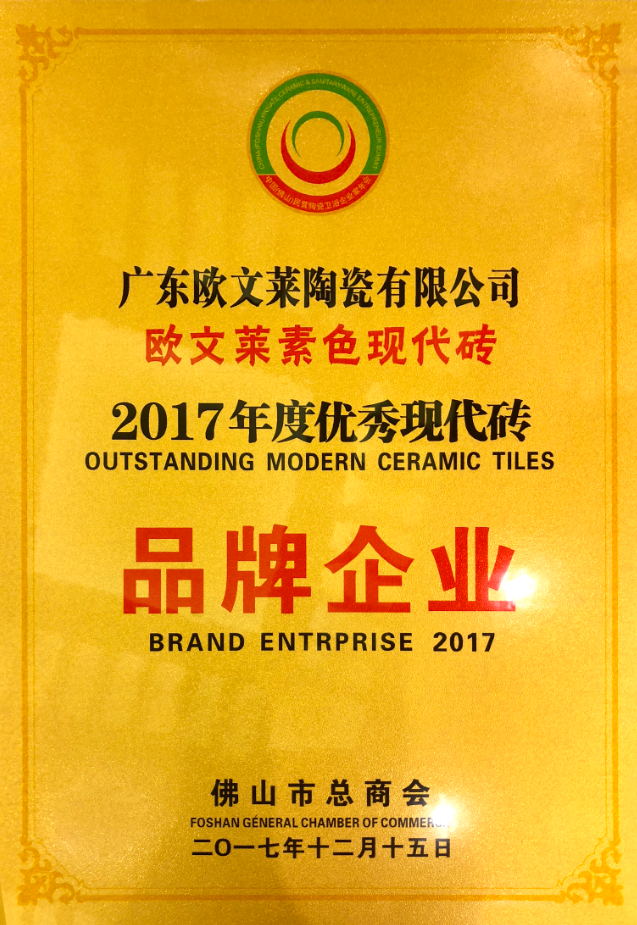 广东欧文莱陶瓷有限公司创建于1999年,拥有广东佛山、马来西亚两大研发制造基地,是集设计、研发、制造、营销为一体的大型瓷砖企业,致力于为消费者提供简约、时尚、高品位的“素色瓷砖”。“欧文莱”是广东欧文莱陶瓷有限公司的陶瓷经营品牌,是中国陶瓷行业高端主流品牌、中国高端瓷砖出口品牌。
