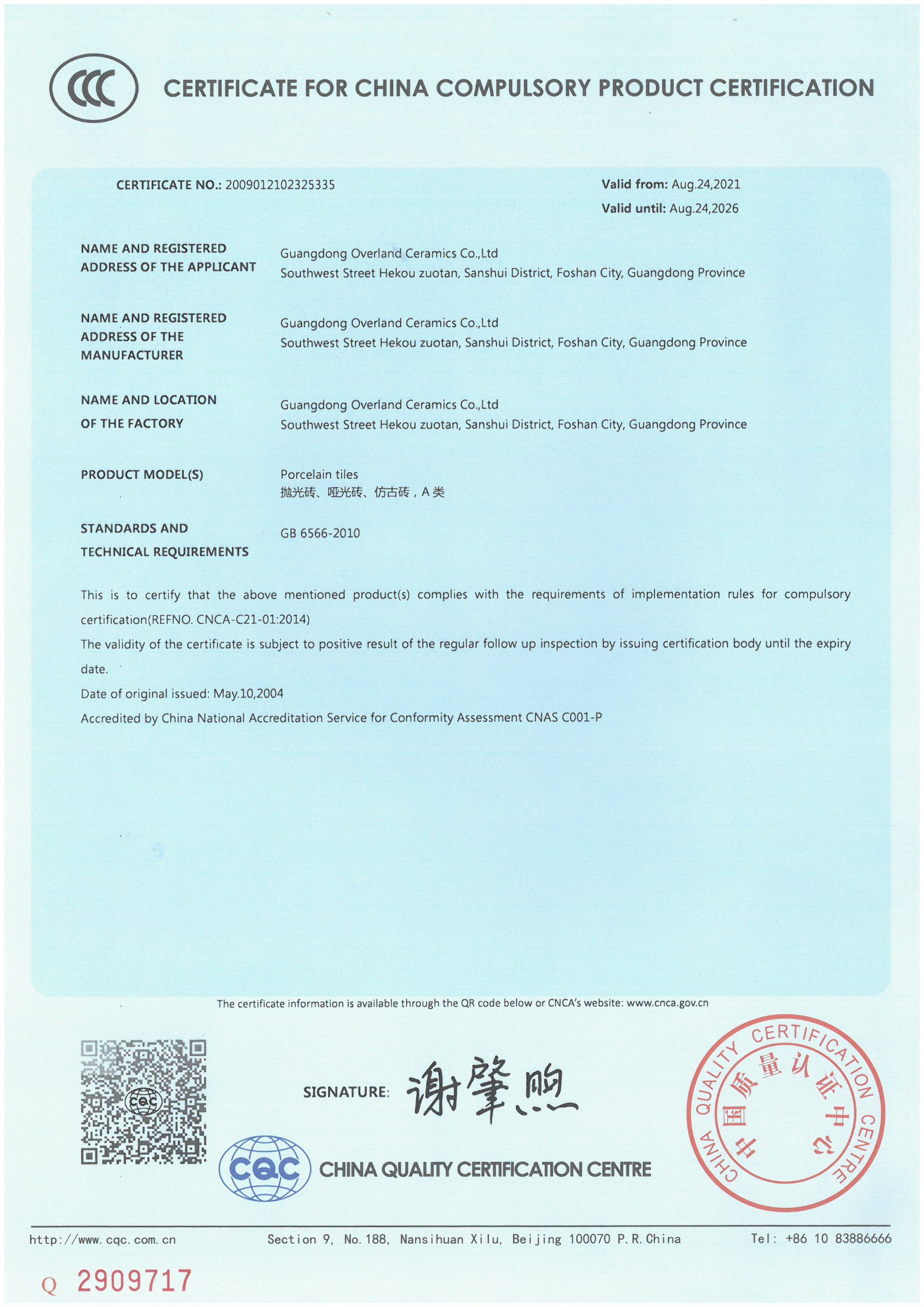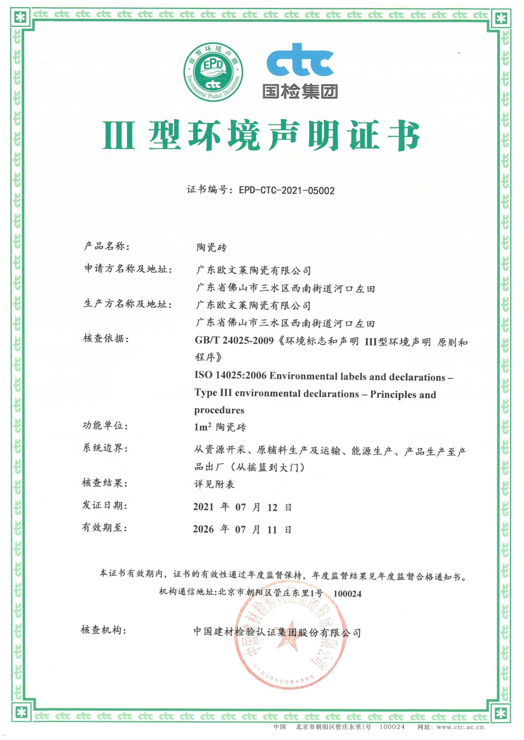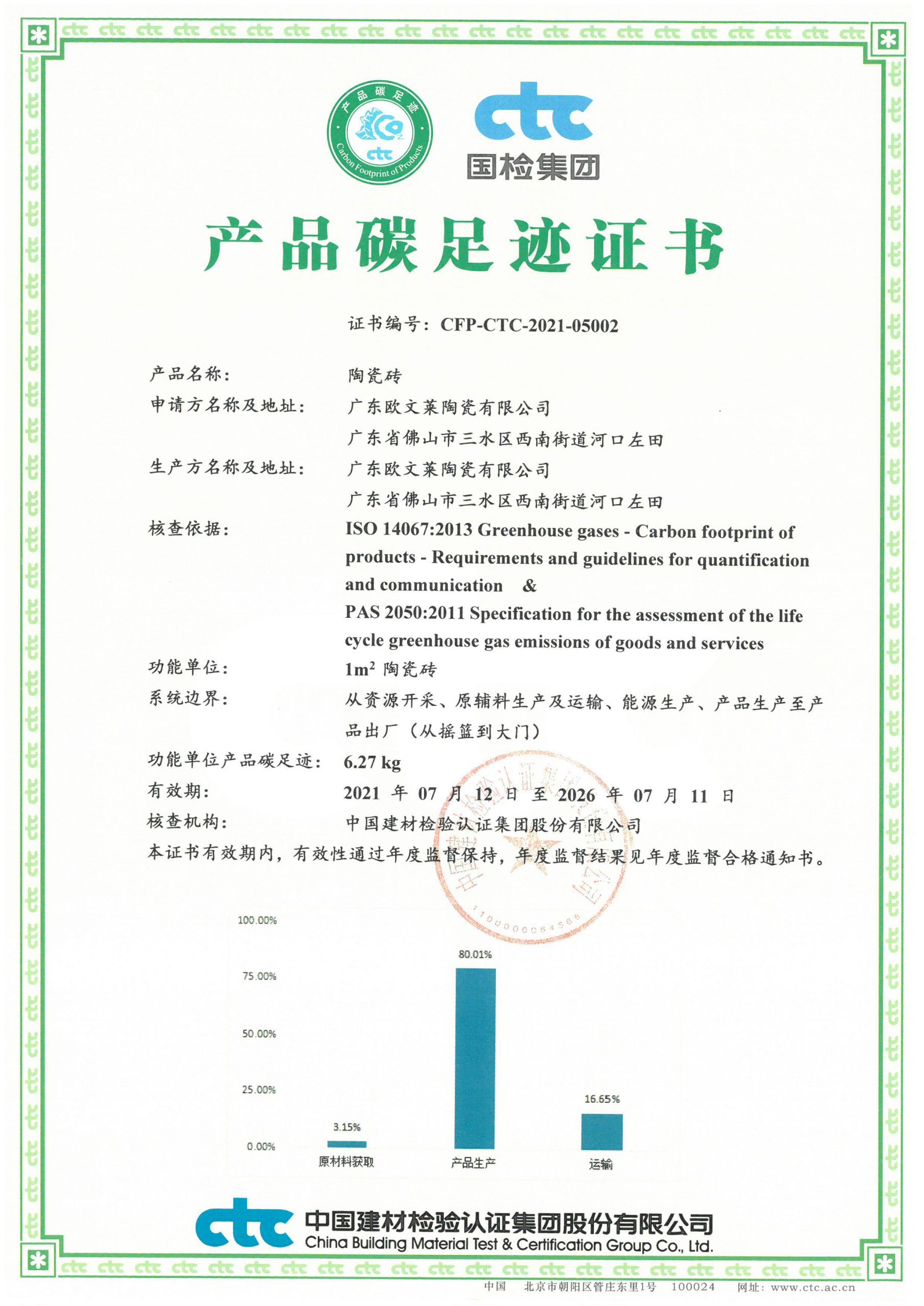 欧文莱执行国际高端制造标准,建立国际化、智能化、专业化的瓷砖生产线,精准控制瓷砖的品质出品。欧文莱与意大利顶级设计研发机构建立长期战略合作,凭借先进制造技术和自主研发能力,多项研发成果入选国家火炬计划。欧文莱享有SGS、NSF、GREENGUARD等国际权威认证,代表欧文莱的产品环保、品质受到国际认可,是极少数三证齐全的中国品牌。