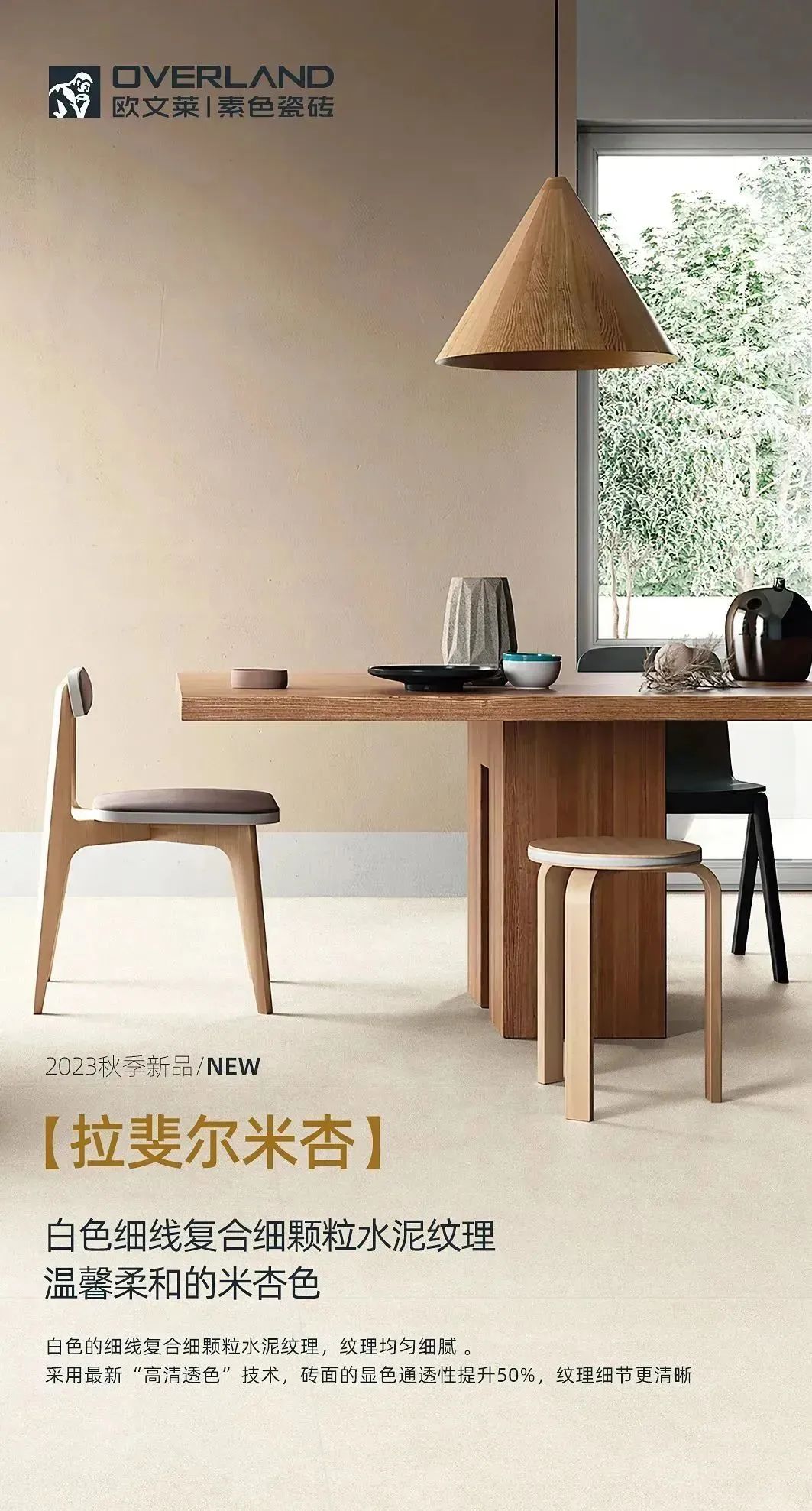 “拉斐尔米白”系列撷取水泥材质自然恣意的风貌,