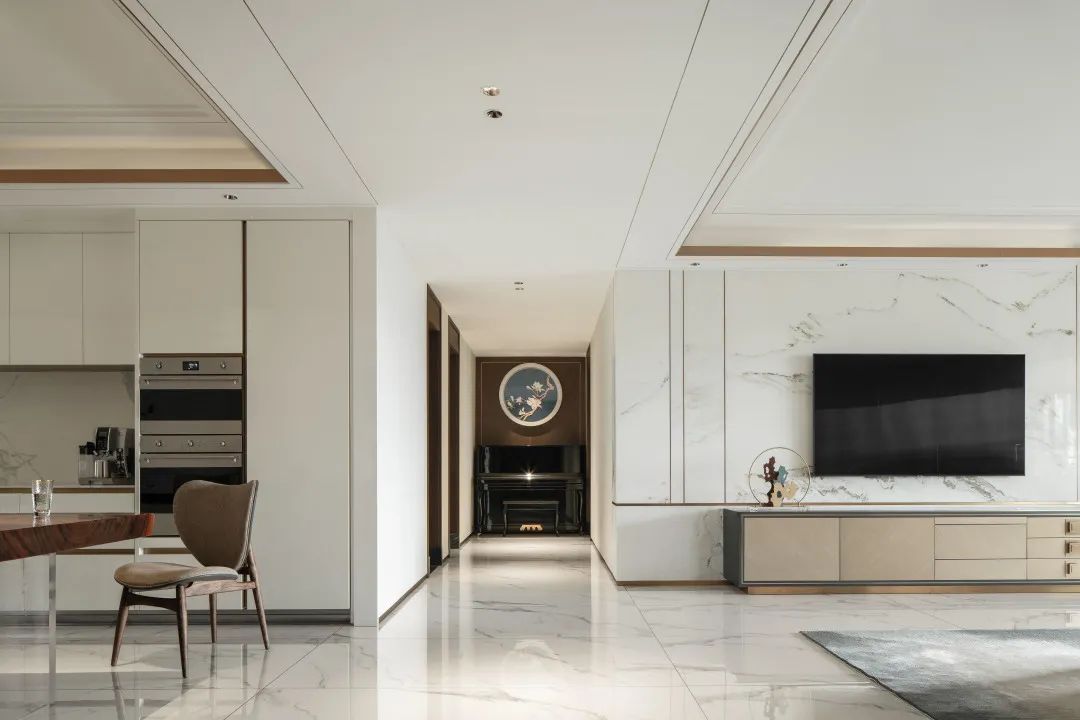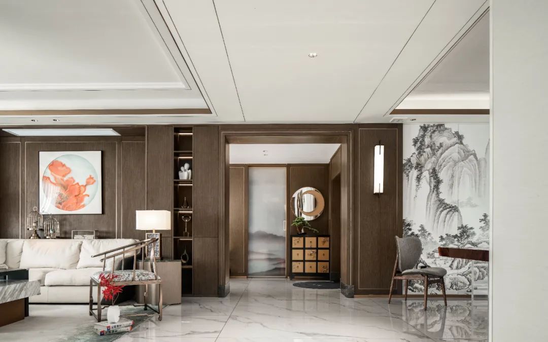 本案业主孟女士是自信从容、知性优雅的独立事业女性。“如何将家装设计完全妥帖地放进属于孟女士的风格模板,我们认为现代与传统碰撞融合的‘当代东方’是最优解。”设计师表示。
