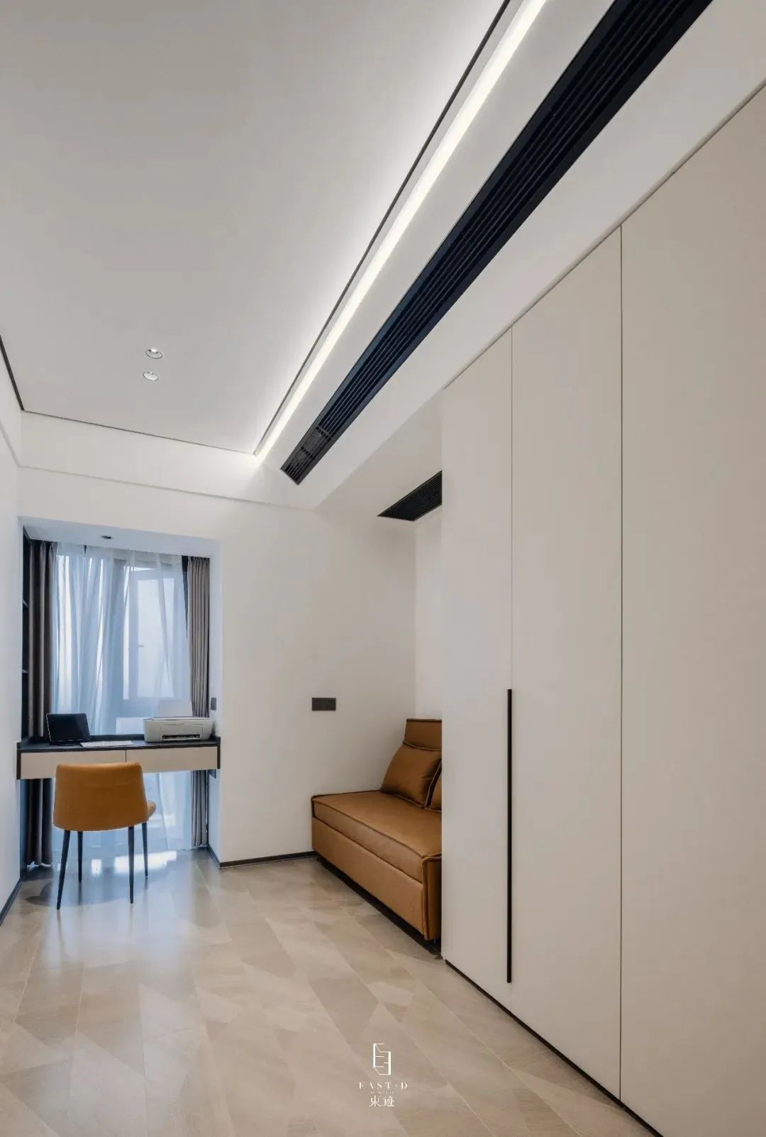 卧室的细节体现了现代风格的自然协调与轻松舒适。主卧主要是深与浅的呼应,令人感到优雅宁静的氛围气息;女儿房延续了简约的设计,但是又透露出整个空间当中的童真性,色调的统一,让整个空间变得更加梦幻。用最少的设计语言,给人无限的放松。灰色调精致内敛,看起来好像可以装得下各种情绪,有了细节与光线的衬托,整个空间变得更加干净、纯粹、无负担。本案最突出的设计亮点,是十分讲究空间的收纳与利用,灵活运用每一寸空间,引入浓郁的生活气息,满足不同的生活需求。