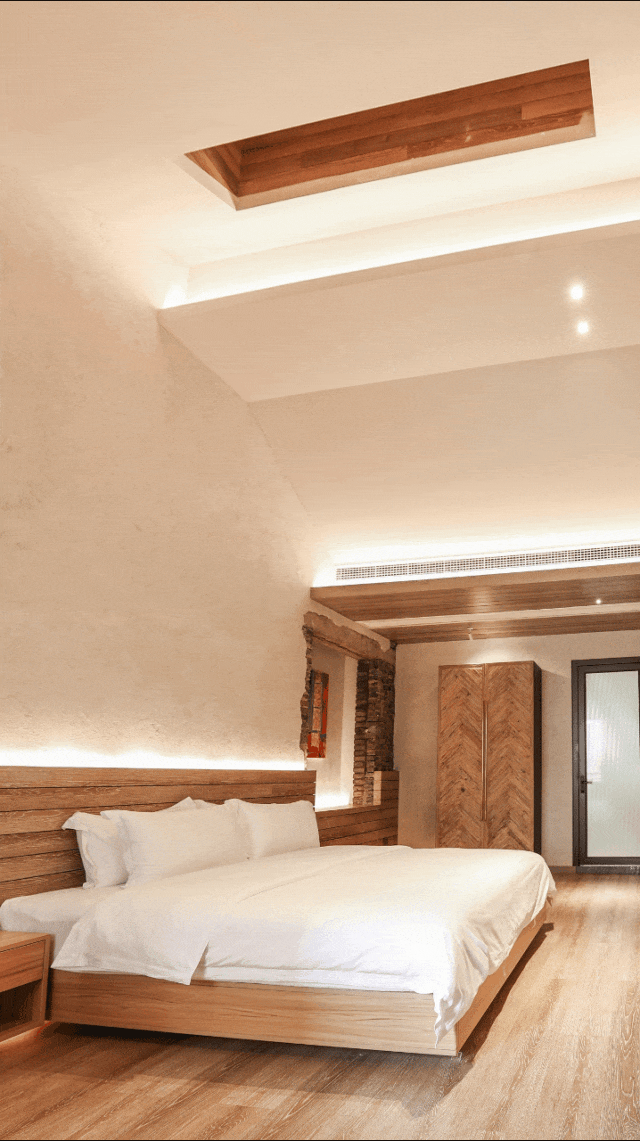 客房将自然的色彩和质感融合在宁静与放松的现代氛围中,保持质朴兼具特色,却也注重实用性。尽管不同房型的设计和建造均采用相似的材料,但却通过各自的布局和细节布置,为客人带来不一样的感觉。
