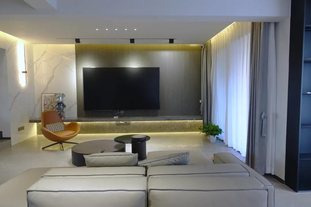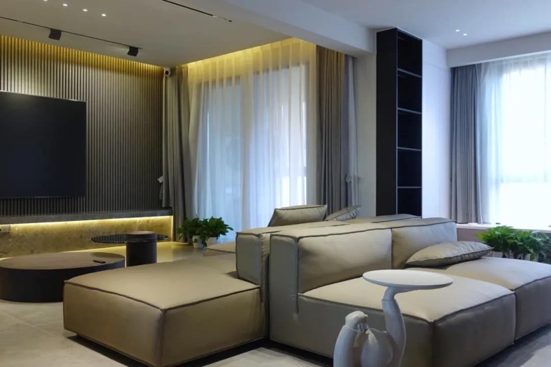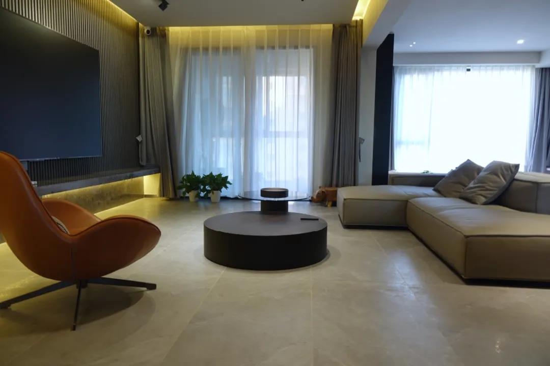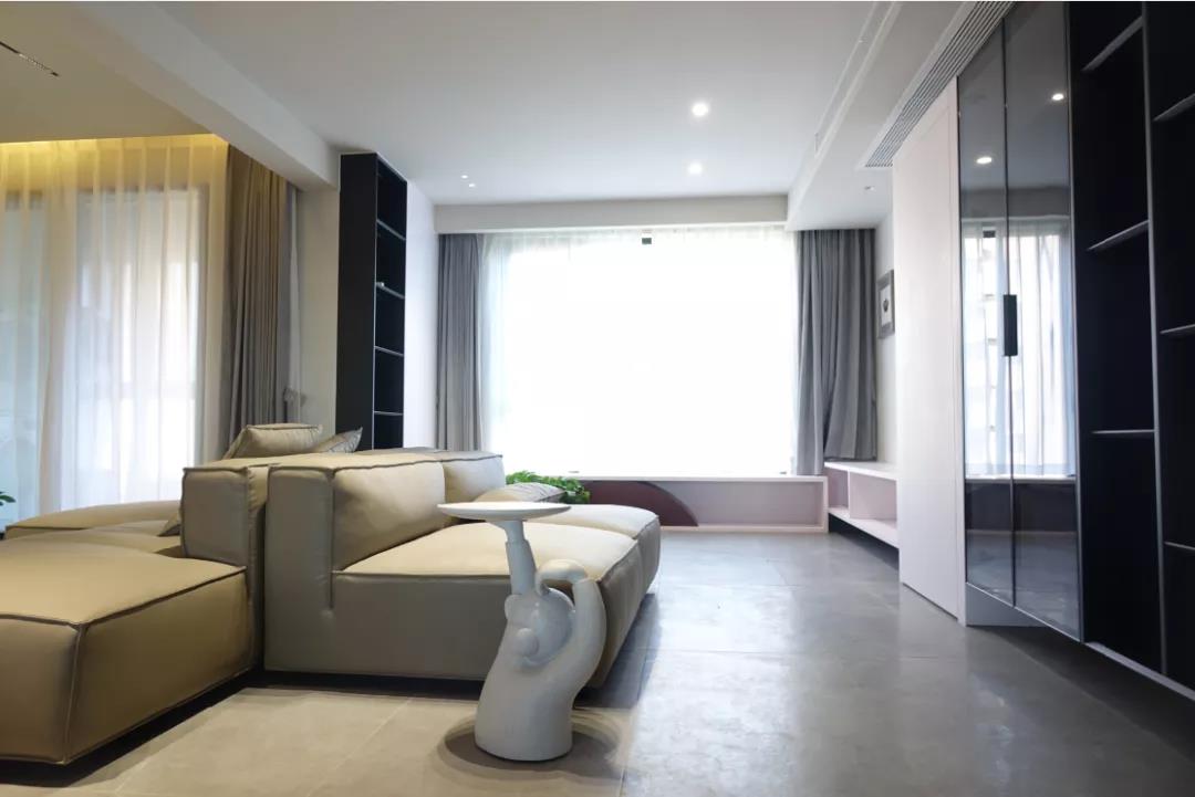 客厅以灰色为主调,有着安定平和的内敛美感,营造轻松家居氛围。