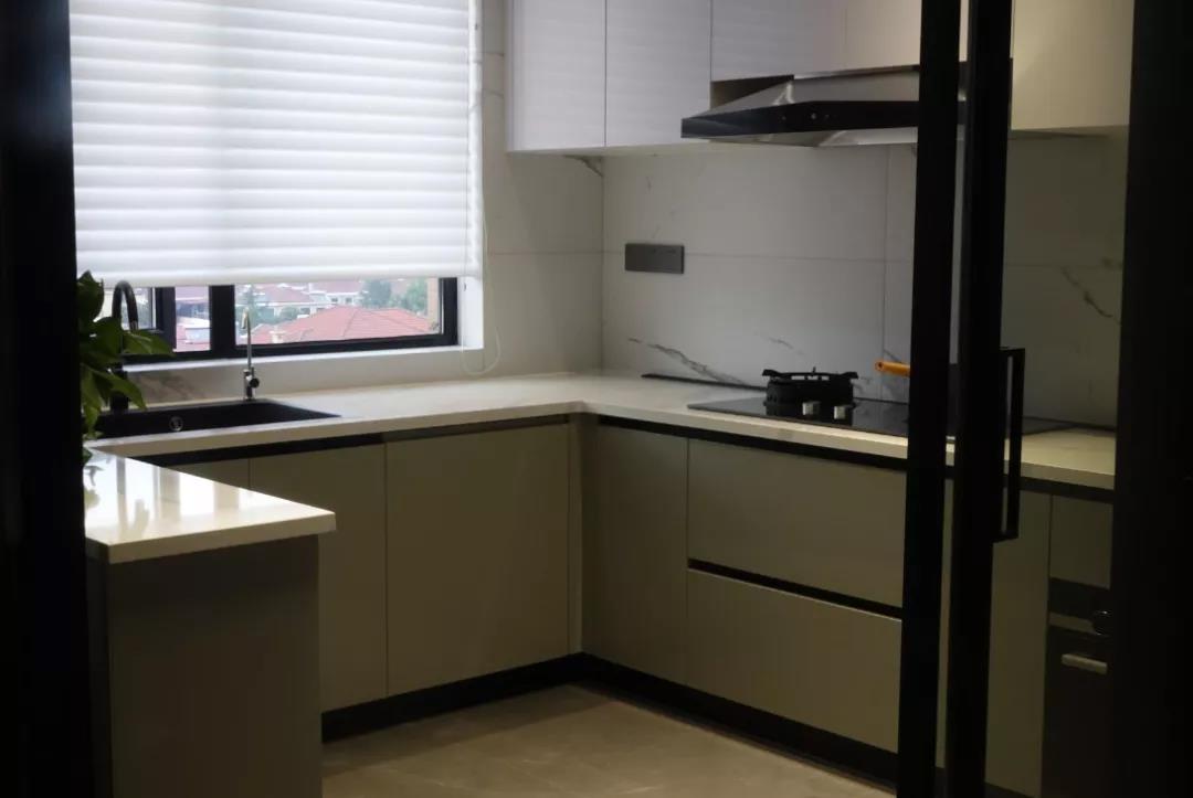 墙面“卡拉拉”系列与白色柜体将周围环境融为一体,简约线条清爽干净,减轻体量感与视觉压力。