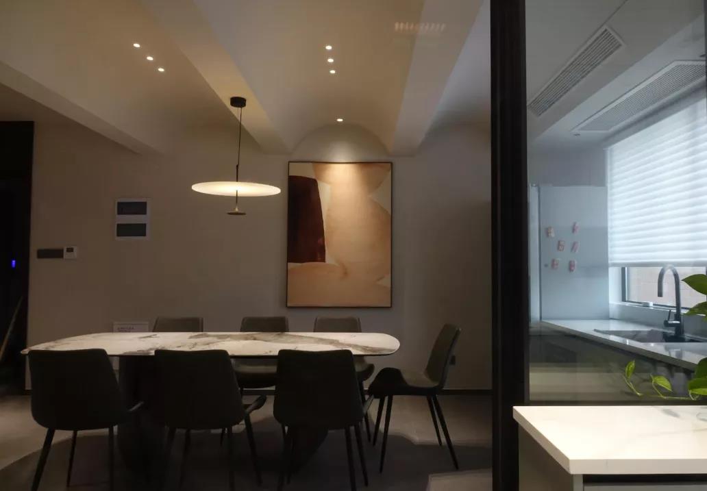 在客餐厅的设计上,设计师突出“社交空间”的理念,尽量打破空间之间的隔断,使整个空间可以成为家人、好友零间隙的交流和畅谈的场所。同时,关注空间的灵活性及延伸感,每个区域之间的关系不是孤立的,而是相互相融的。