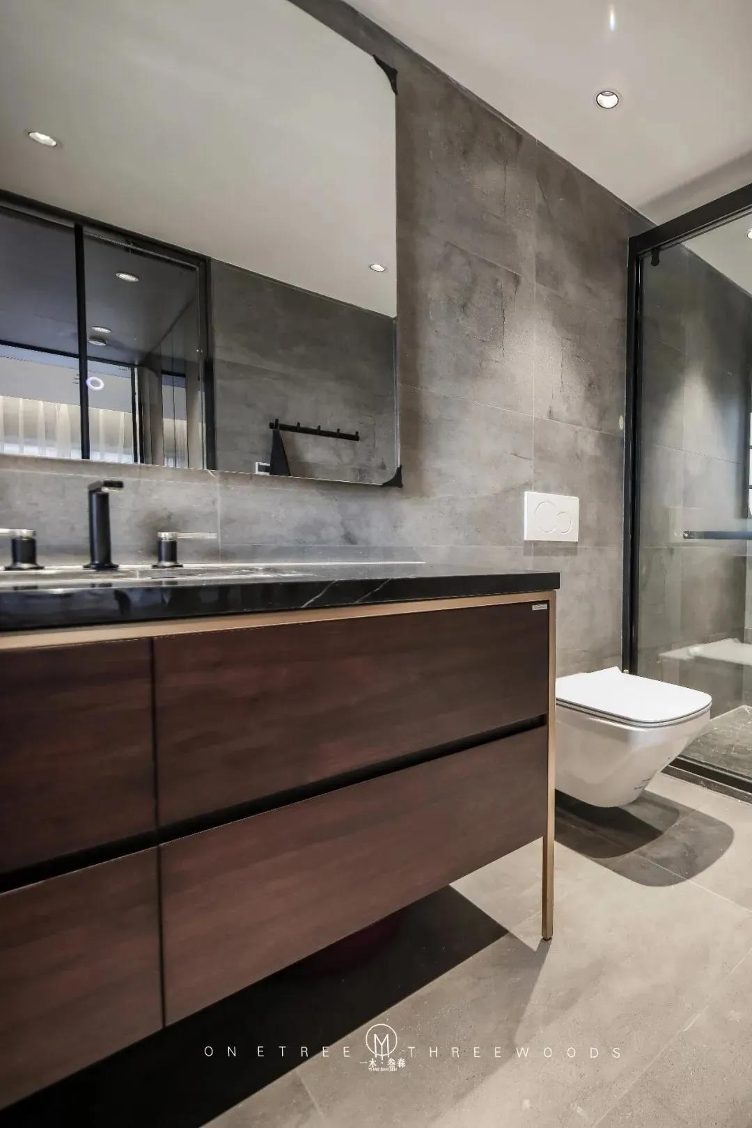 “漫诗彤”系列在卫生间区域进行应用,舒适的灰调,散发着平和之感。为空间做减法,洗礼日常杂绪,从而沉淀心绪。