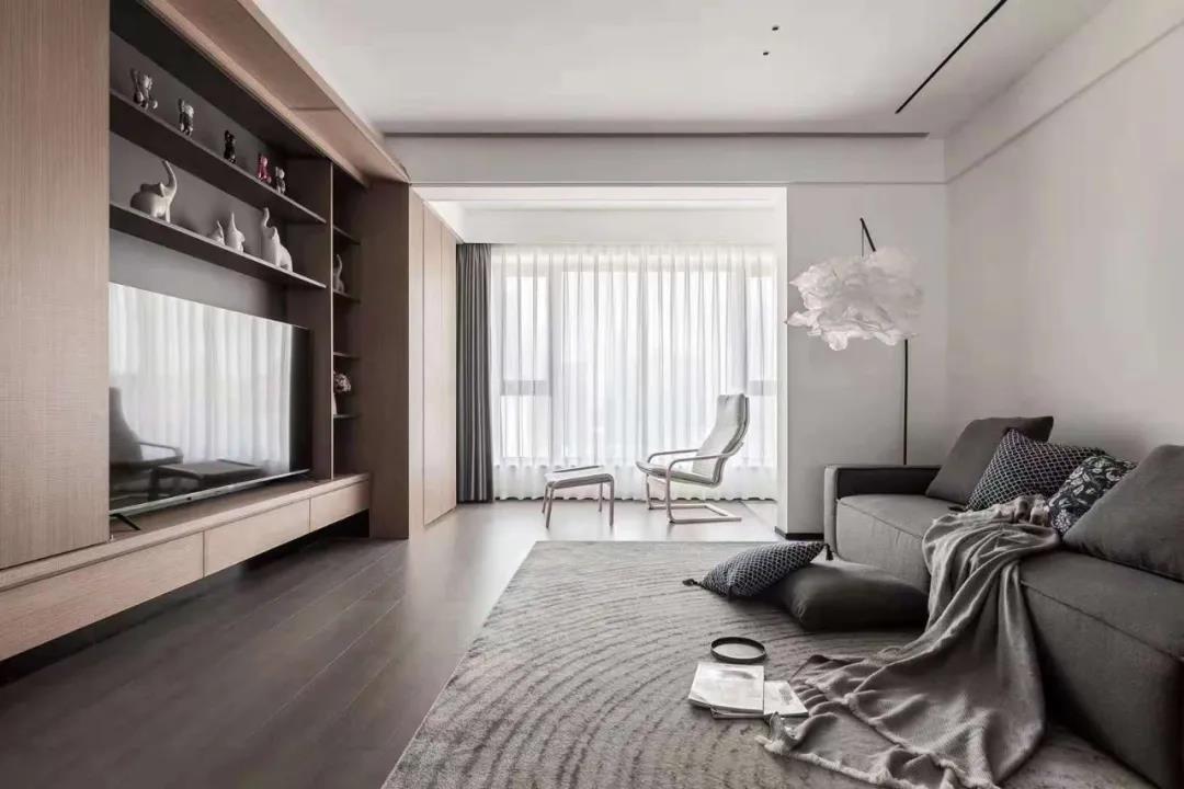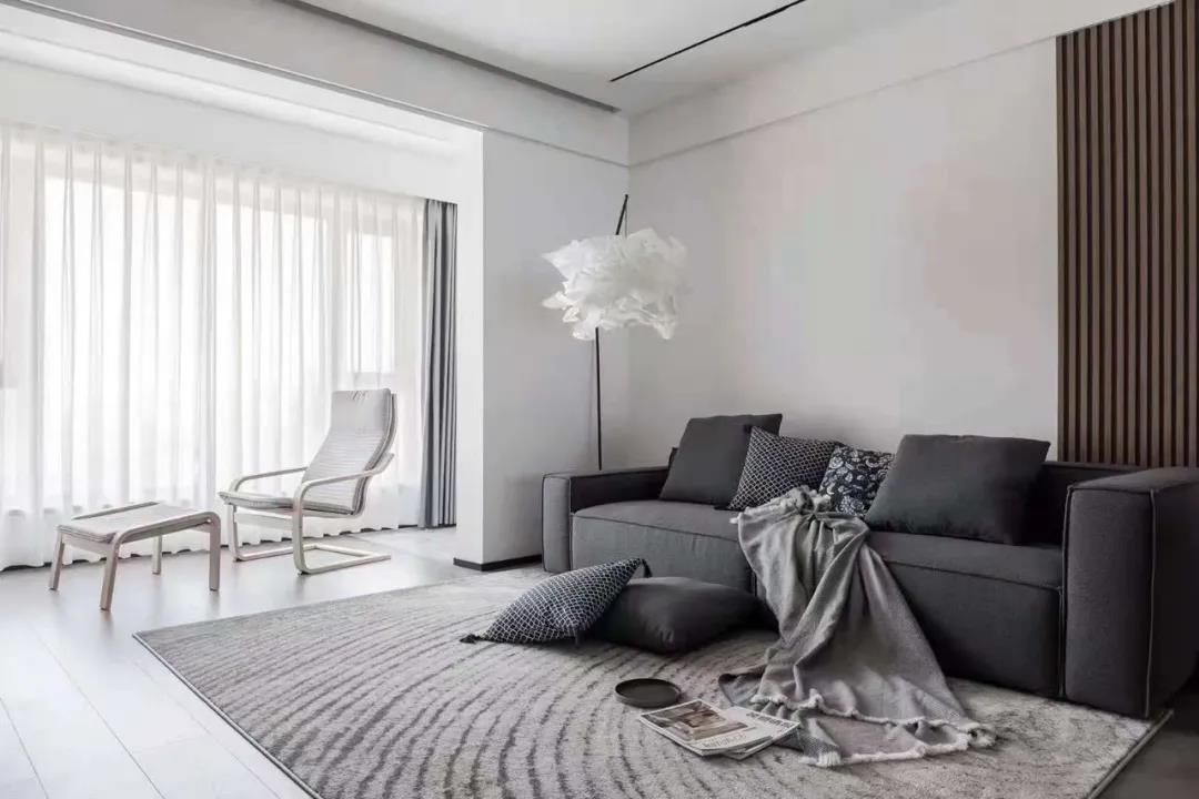 深灰色布艺沙发与灰色地毯,给人温和柔软的舒适感,以不同色彩开辟出一隅安静之地,窝在沙发里,或坐或躺,感受安静。