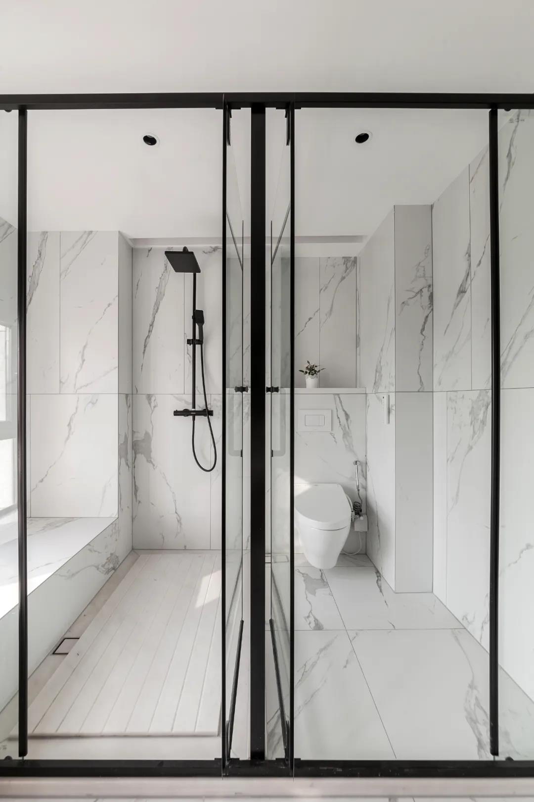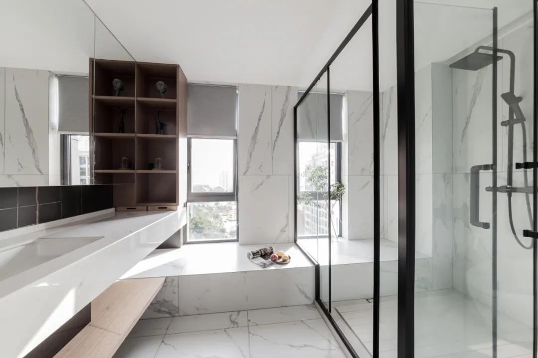 延续客厅设计的木质柜体充满质感,增加空间辨识度。“卡拉拉”系列灵动轻盈的白色,同样让卫生间看起来更加通透,一切都安静且美好。