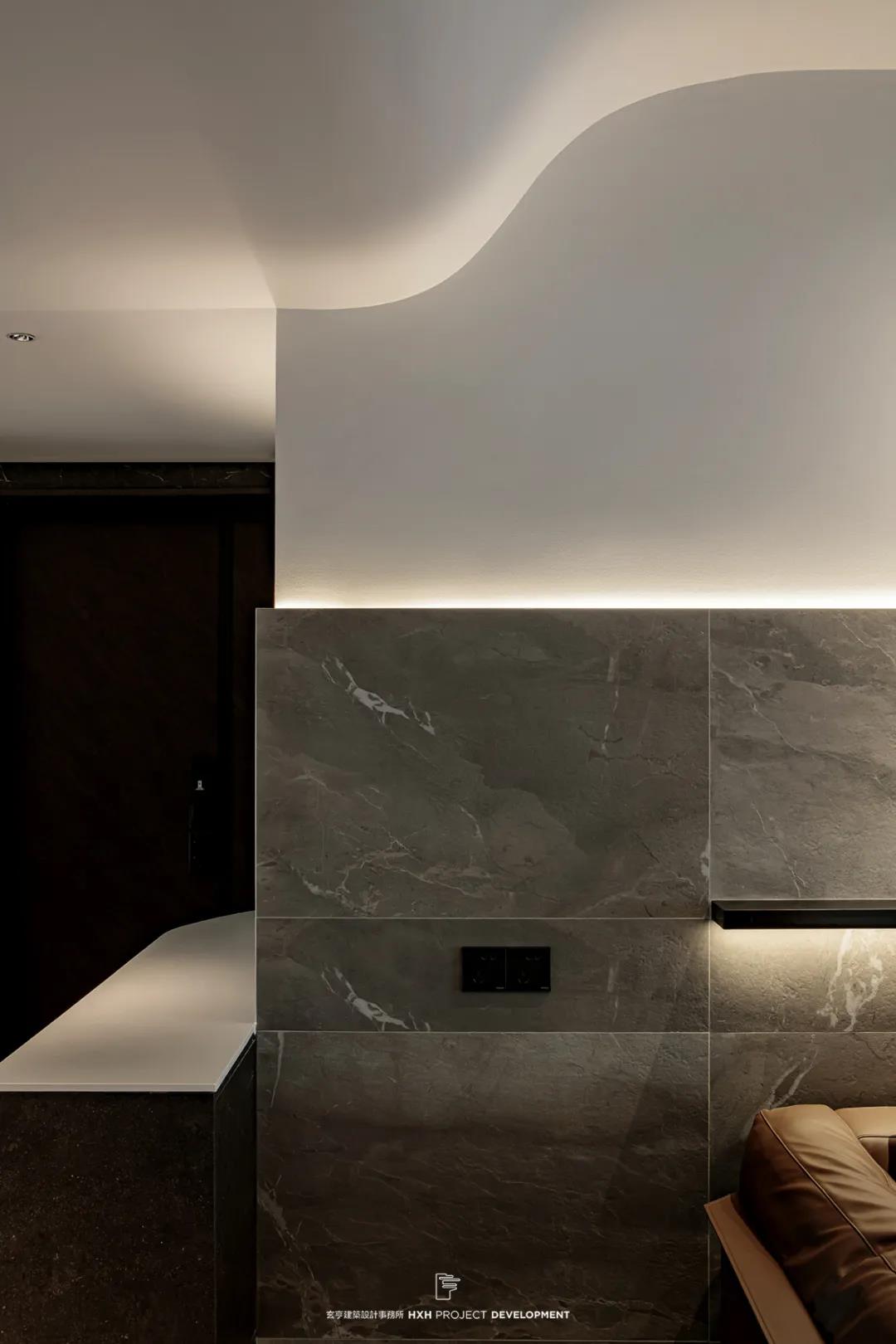 本案设计中运用了不同的材质做了的融合,运用差异性划分出区域的功能性,全屋隐形门,用不同高低、不同厚度的体块互相叠加,形成立体层次。