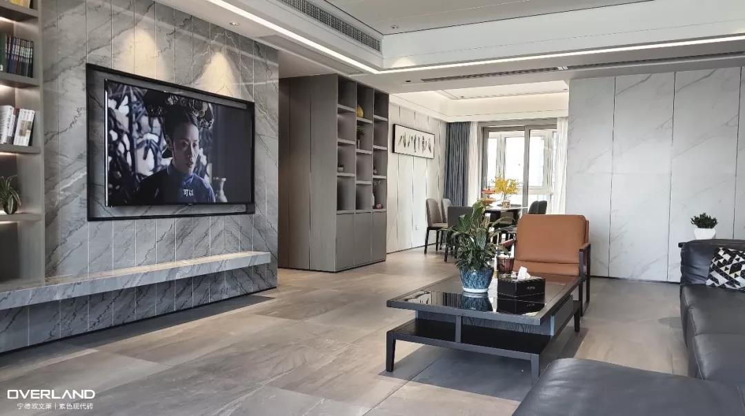 “宙斯”系列层次色泽深入浅出,纯粹、自然,以高级灰调奠定空间的基调;“卡拉拉”系列纯白底面上漂浮的灰纹,显得自然飘逸,应用到空间中有种自然柔和的浪漫感觉,洁白色调能将主人的品味衬托得更高贵优雅。