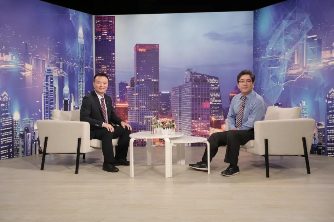 ▲央视著名主持人水均益(右)对话欧文莱执行总裁汪加武(左)录制现场合影