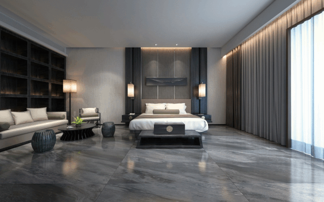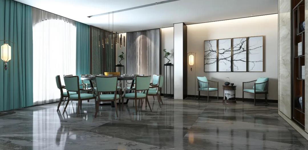 素色瓷砖+新中式,可清逸简约,亦可气韵隽永。