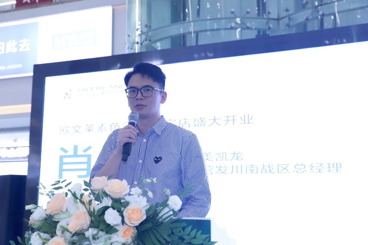欧文莱加盟商中心中区负责人林毅欧文莱加盟商中心中区负责人林毅对宜宾欧文莱体验店的盛大开业表示衷心的祝贺,并就当下市场内外形势下,欧文莱品牌的发展、未来战略方向,向宜宾欧文莱的未来发展致以支持与鼓励,他表示:“宜宾欧文莱的开业,预示着欧文莱向着更广的标的进发,也给我们提出了更高要求。在不断提升服务的同时,给广大消费者带来更好的产品成为我们更大的使命!”