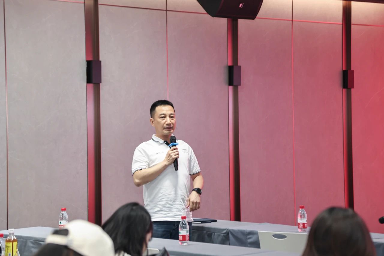 ▽ 欧文莱品牌营销中心策划总监文映人向参访团师生介绍欧文莱公司的定位方向、产品创新及营销推广策略等基础信息。