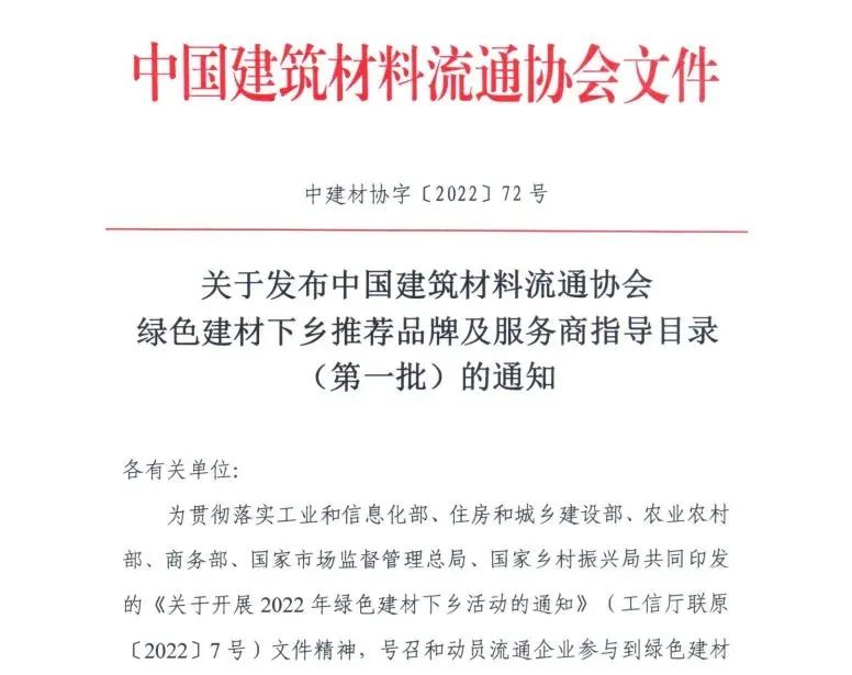 △ 中国建筑材料流通协会发布红头文件《关于发布中国建筑材料流通协会绿色建材下乡推荐品牌及服务商指导目录