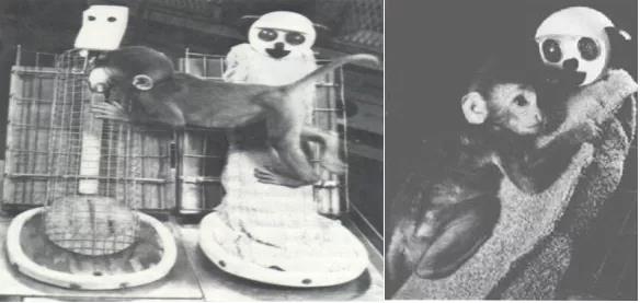 1958年,科学家Harry F做了一个有趣的实验,他把一只刚出生不久的小猴放在笼子里,用一只用铁丝制成的玩偶以及一只毛茸茸的玩偶充当母猴。值得一提的是,奶瓶挂在铁丝制成的玩偶上。接下来有趣的事情发生了:小猴只愿意抱在毛绒“母猴”身上,哪怕吃奶的时候也只愿意把上半身伸到铁丝“母猴”挂奶瓶处。