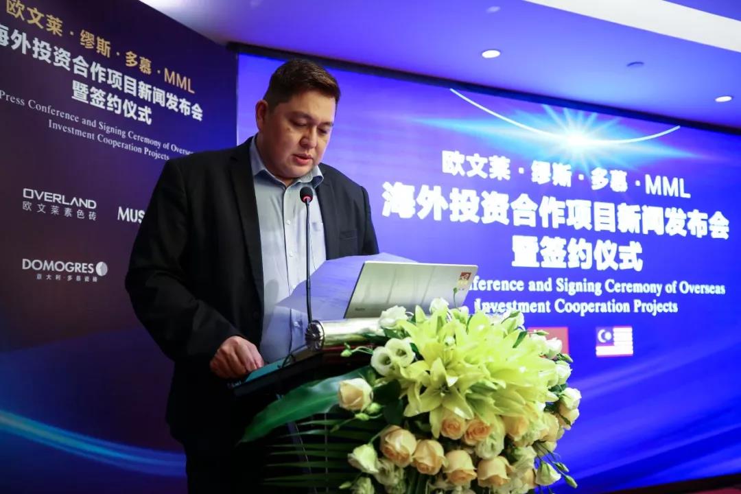 8月9日,由广东欧文莱陶瓷有限公司、马来西亚MML等品牌联合主办的海外投资合作项目新闻发布会暨签约仪式在佛山希尔顿酒店隆重举行。马来西亚MML与欧文莱顺利签约,共同投资合作,实现强强联手,在马来西亚MML原产区硬件基础上重力打造新型的生产基地的合作协议顺利签订。