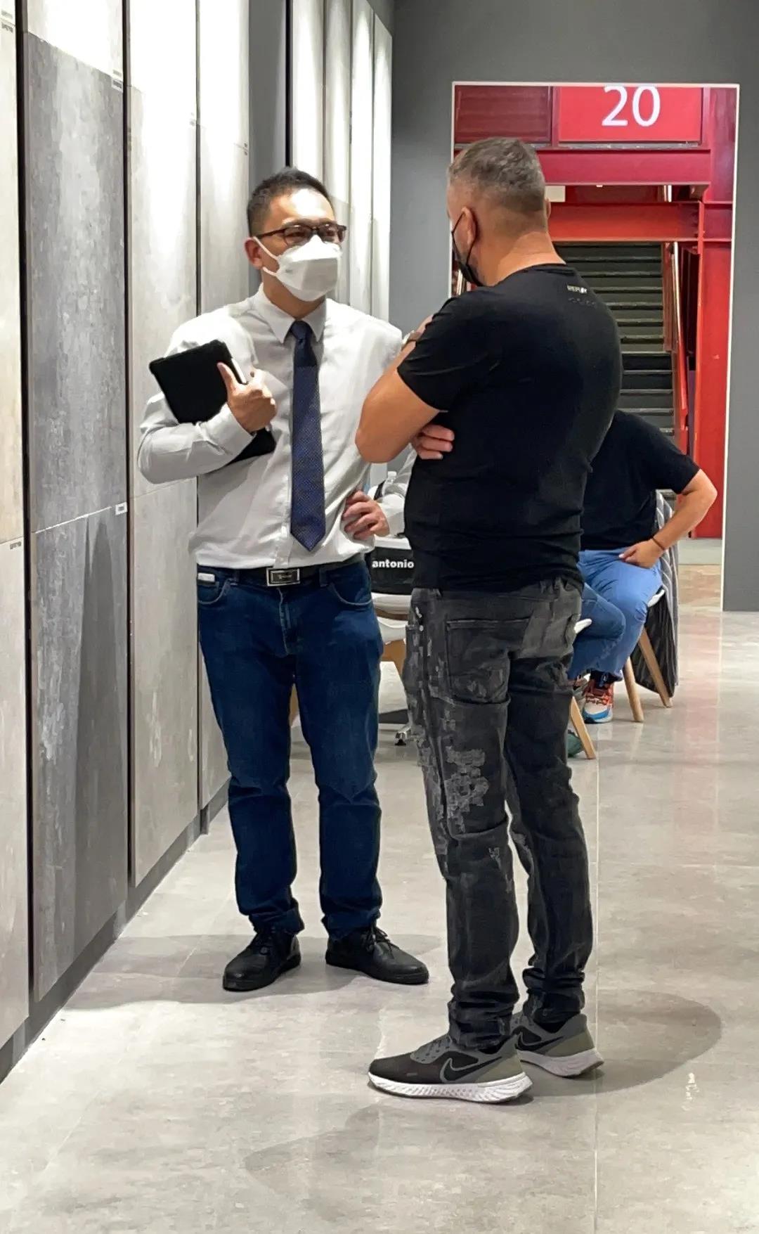 欧文莱在全球市场都拥有非常庞大的老客户群体,疫情两年阔别多时,许多老客户赶到展会现场感受新品的期待比以往更浓烈,也“幸好没有令人失望”。而有诸多新客户表示,“好看,舒服,无论是表面纹理还是产品质感,都是我所喜欢和需要的。” 产品敢与欧洲品牌同场PK才是真正的国际化 到博洛尼亚拿订单,欧文莱最终成绩如何?这个尚未能下定论。但在这个国际平台上说出“为成交”的话,却需要一定底气。欧文莱品牌营销中心总经理梁雪青曾在受访时提到:“中国陶瓷企业进入博洛尼亚展的关键,核心依旧是产品本身,包括原创设计以及工艺技术,而这些也是中国品牌的产品立足欧洲高端市场或国际市场的关键。能够进入博洛尼亚展的企业,也意味着品牌调性和产品设计在一定程度上,与欧洲高端市场或国际市场的主流审美高度匹配。”