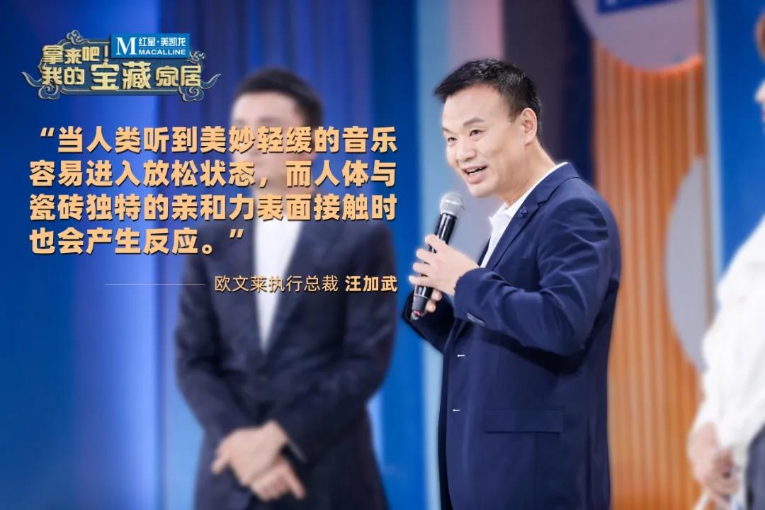 欧文莱执行总裁汪加武亲自上阵,携手红星美凯龙跨界央视国家宝藏,分享现代宝藏家居,带来宝藏家居必不可少的优质瓷砖产品,现场金句频出。